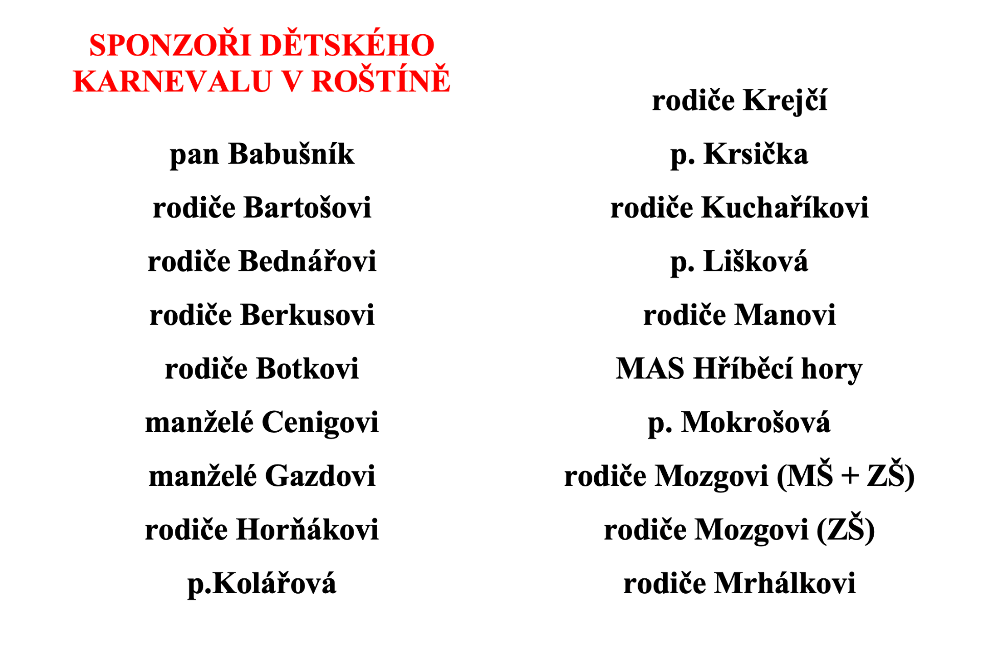 Děkujeme všem sponzorům karnevalu.